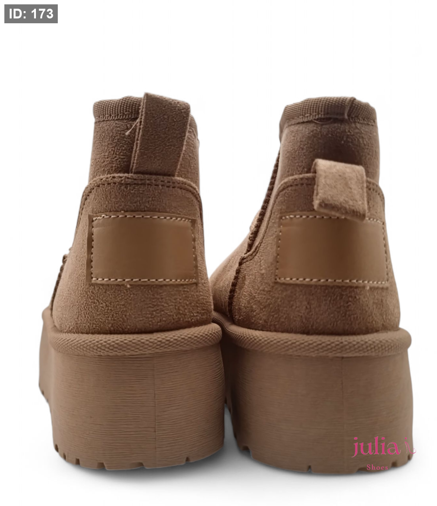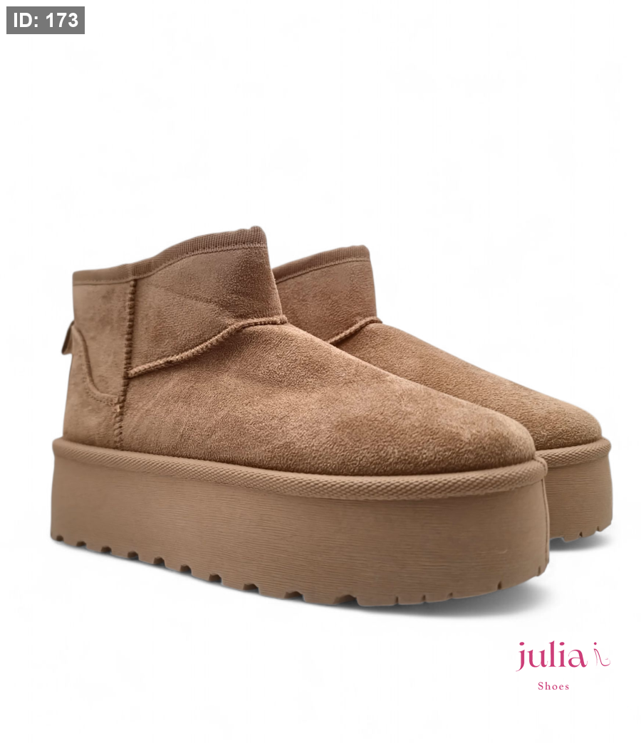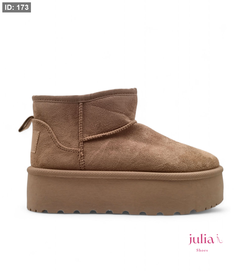 Soft, light khaki ultra-mini boot featuring a stylish back bow detail and a thick, on-trend platform sole for supreme comfort and cozy warmth