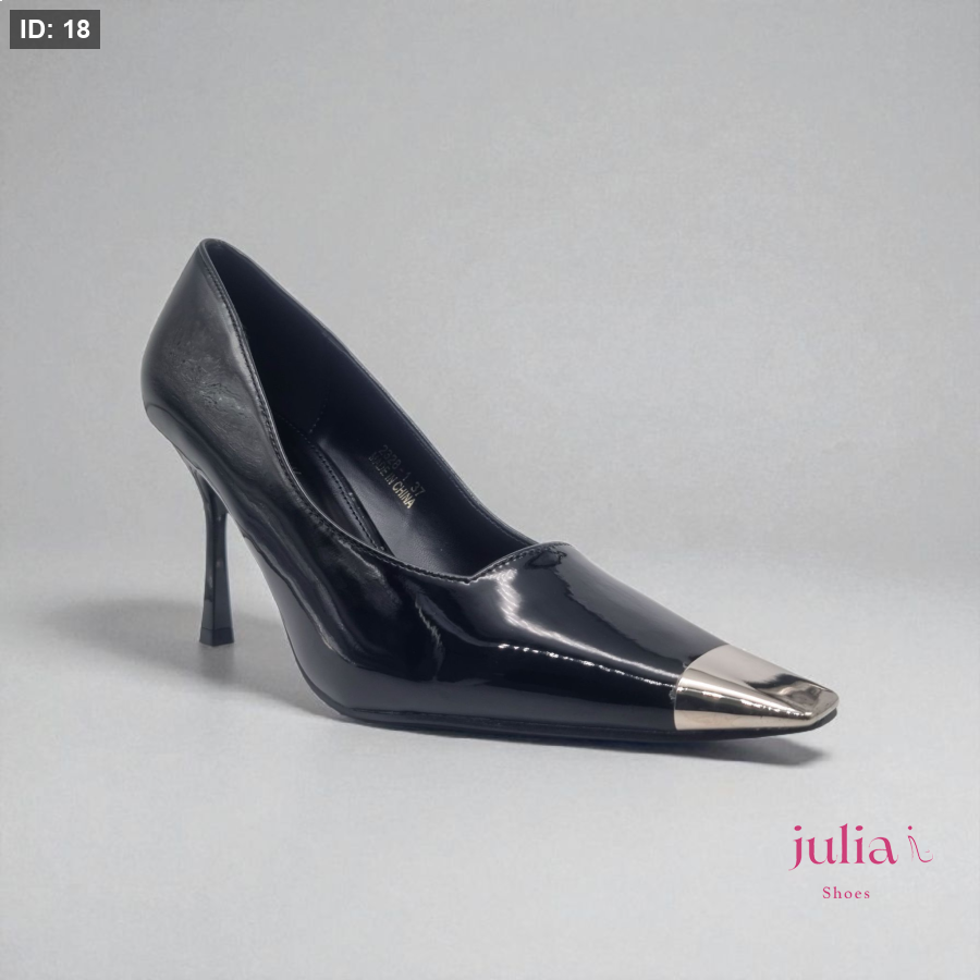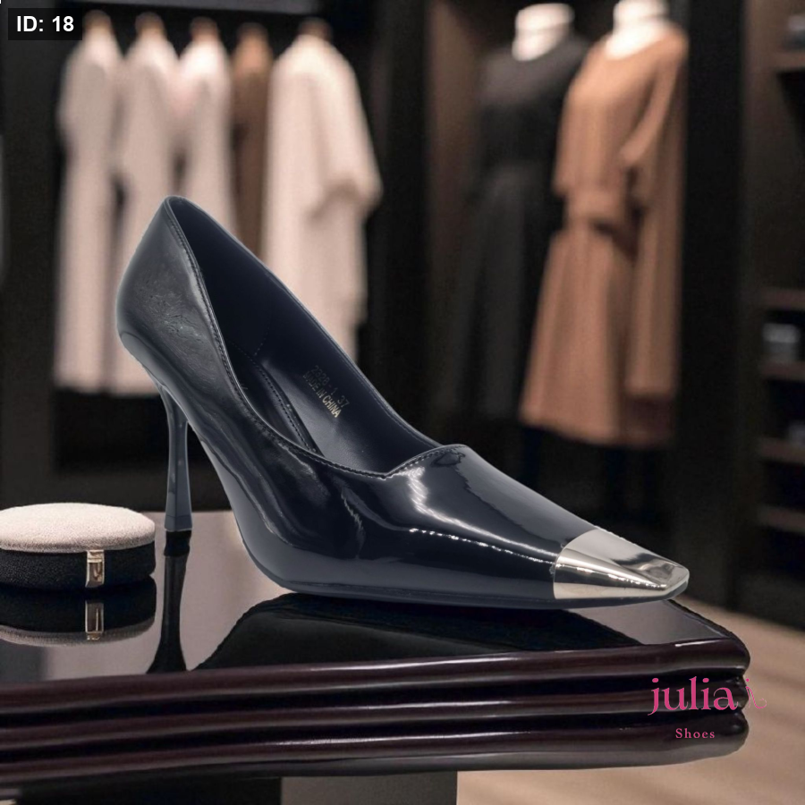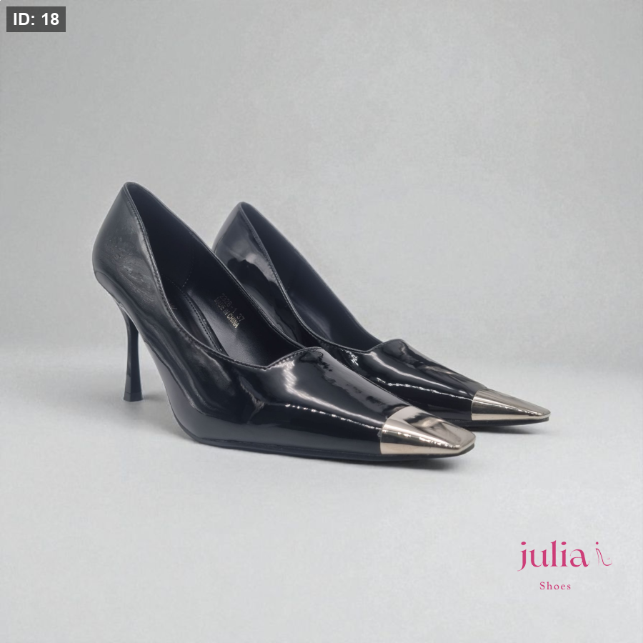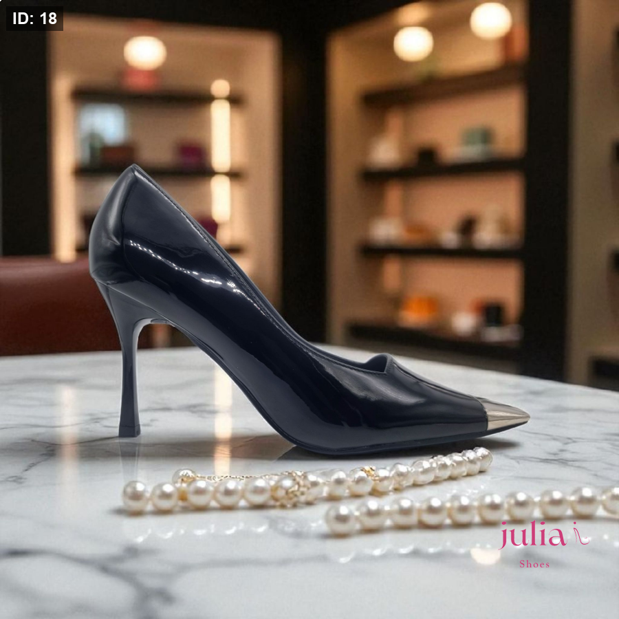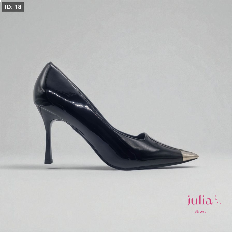 LEATHER BLACK HEEL WITH A GOLD FRONT