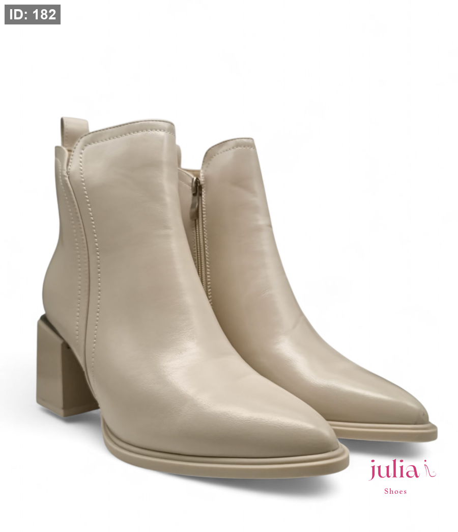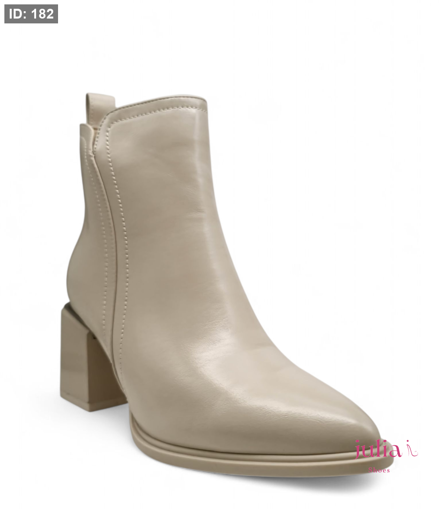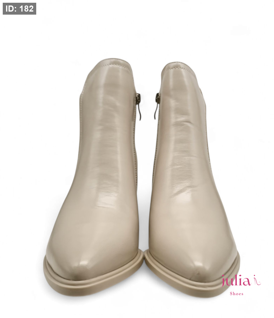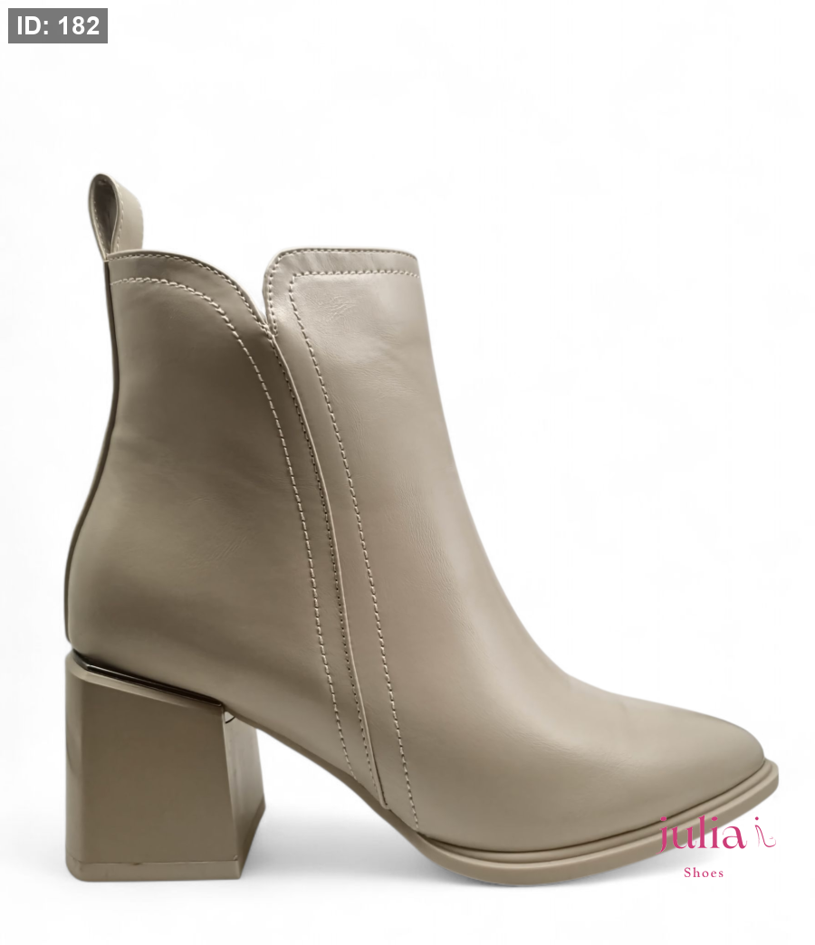 ​The V-Cut Neutral Boot - Effortless Chic with a Metallic Glint ​The perfect ankle boot for effortless everyday elegance. Its tranquil neutral shade brightens any outfit, while the V-cut opening subtly elongates the leg line and simplifies wearability.