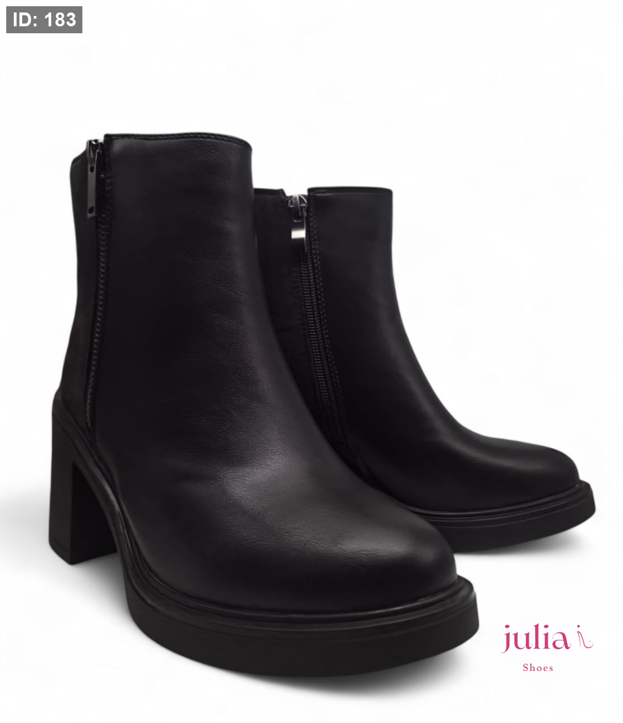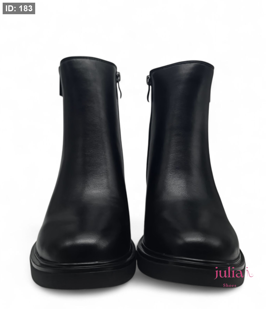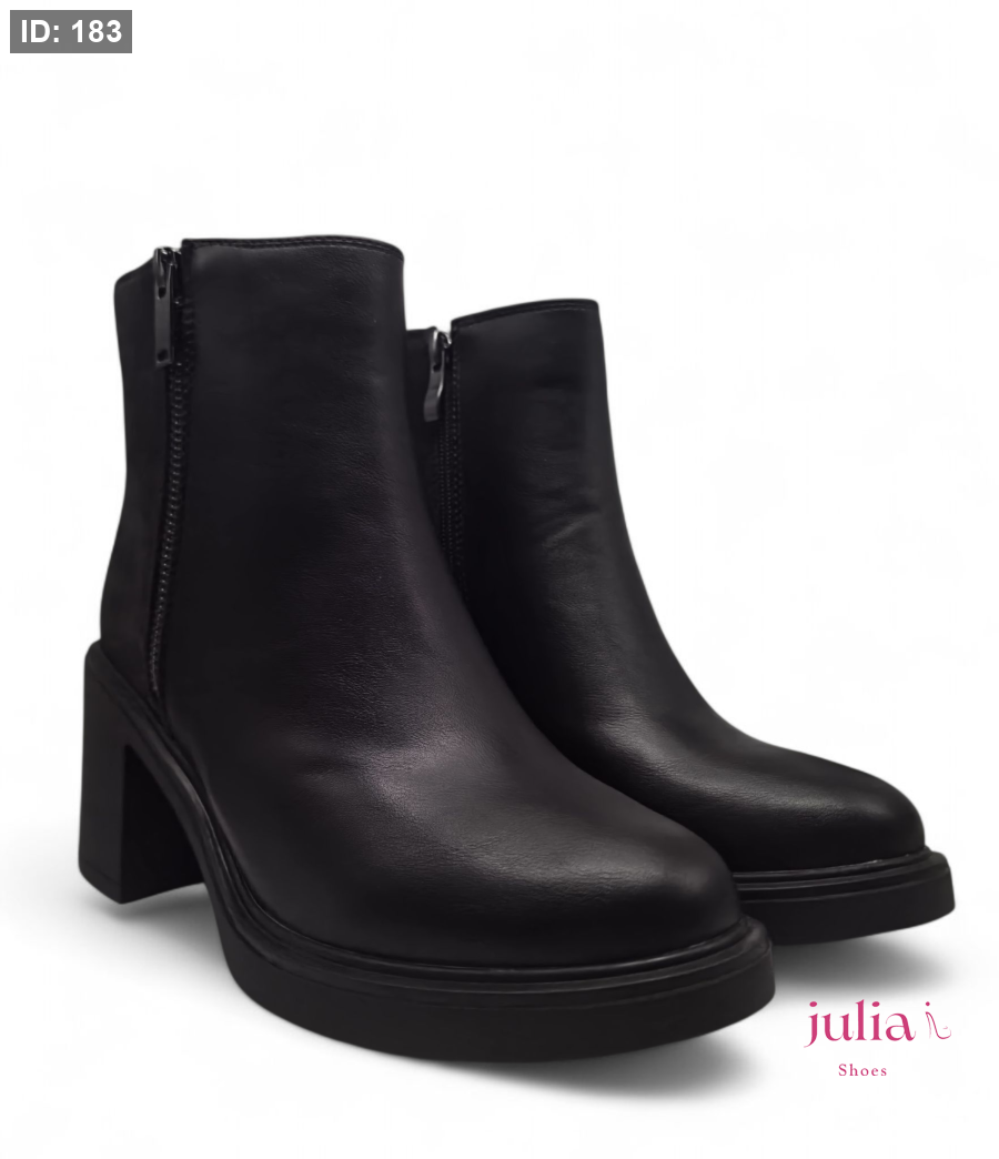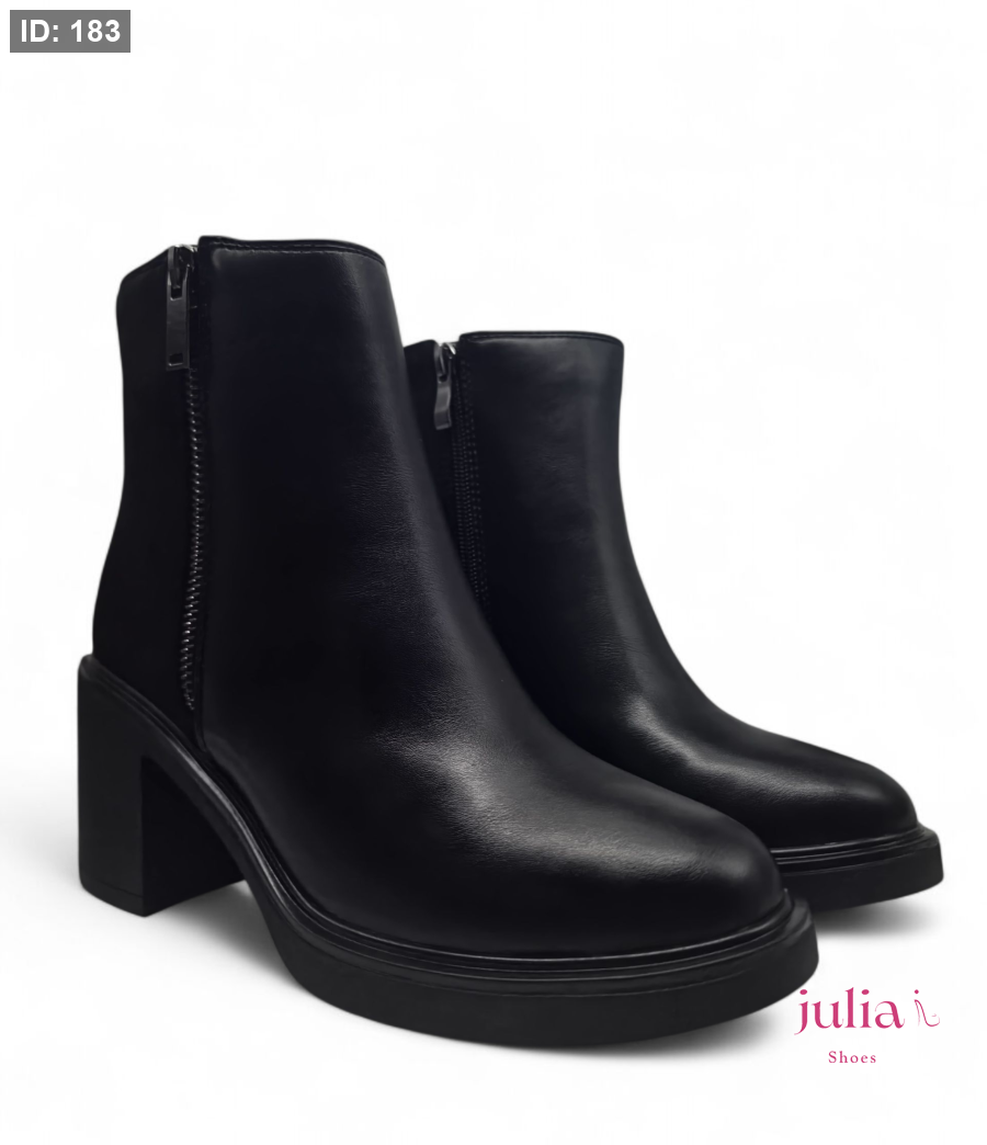 CLASSIC BLACK ANKLE BOOT WITH BLOCK HEEL AND ZIPPER