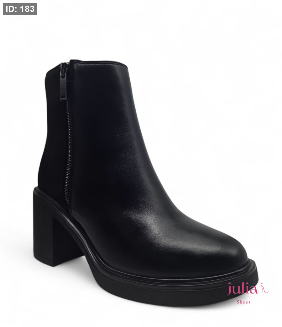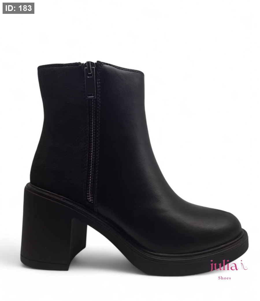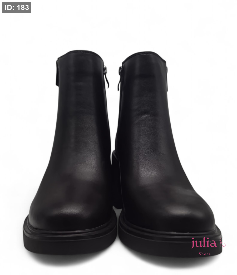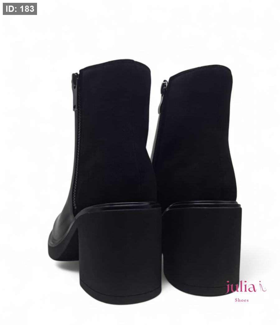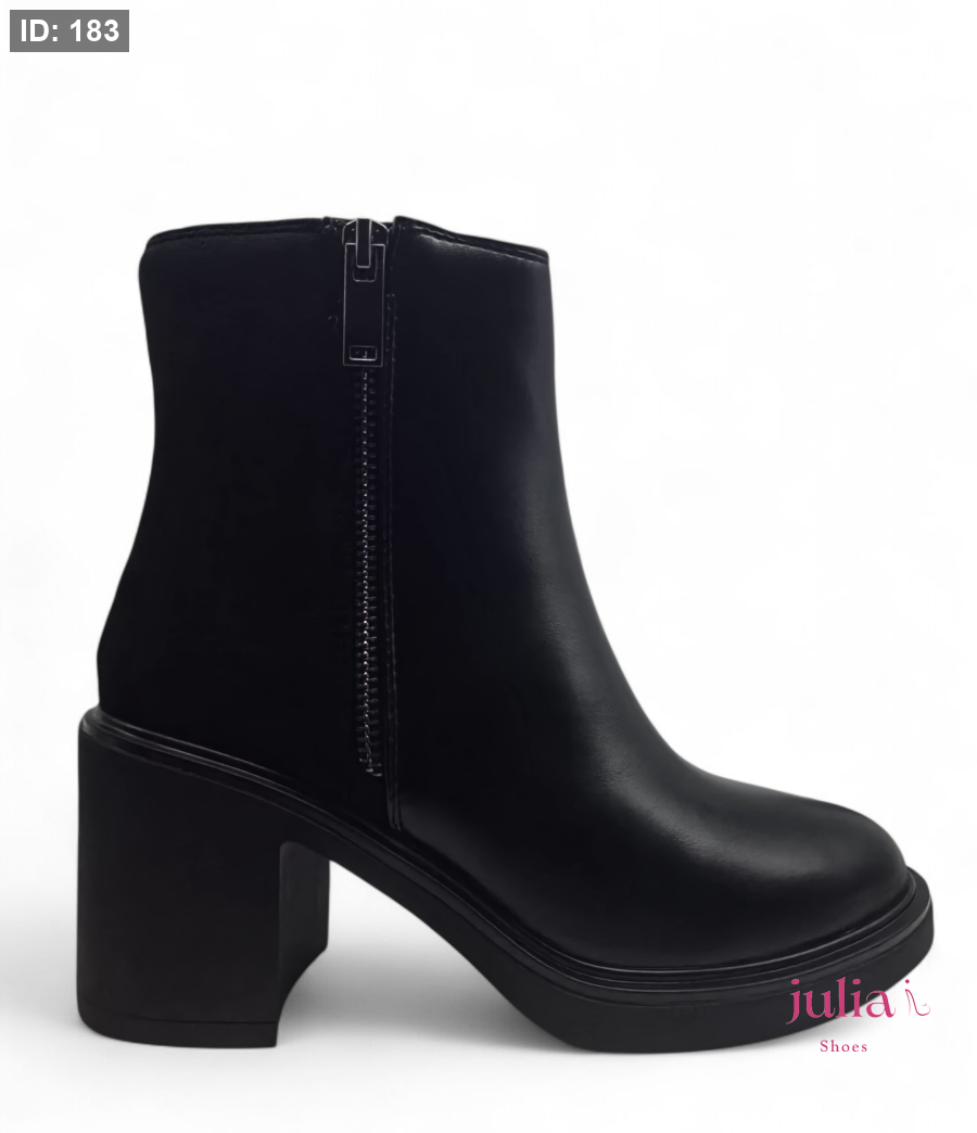 CLASSIC BLACK ANKLE BOOT WITH BLOCK HEEL AND ZIPPER
