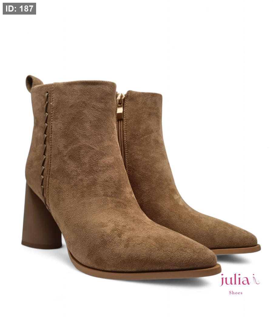 SUEDE ANKLE BOOT WITH BRAIDED STITCHING