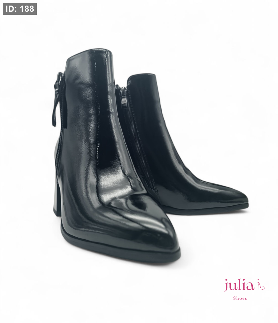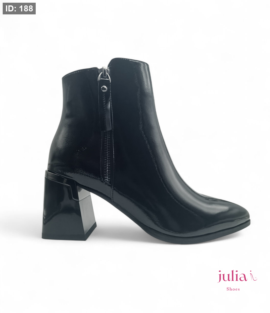 PATENT LEATHER ANKLE BOOT GEOMETRIC BLOCK HEEL