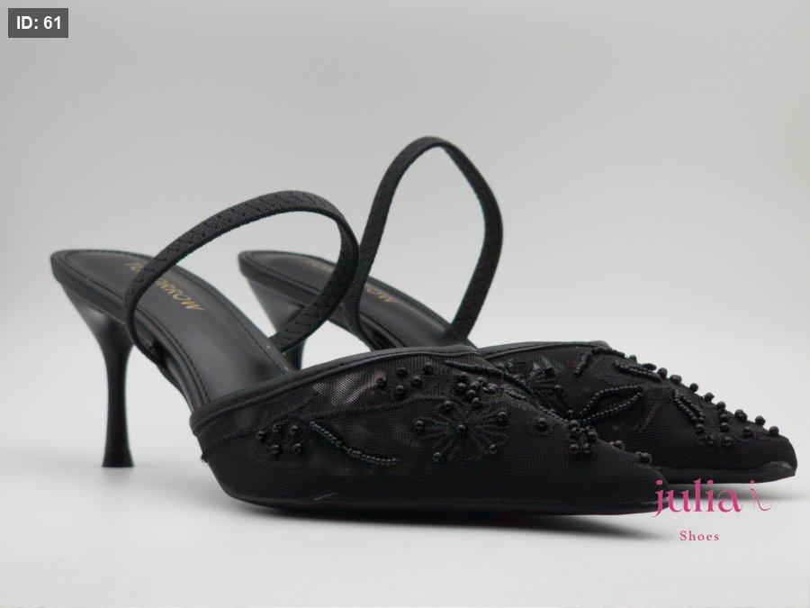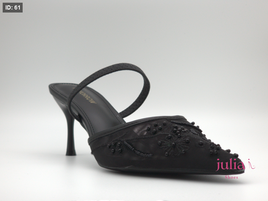 BLACK EMBROIDERED MESH SLINGBACKS