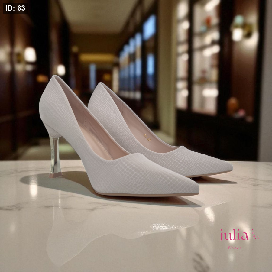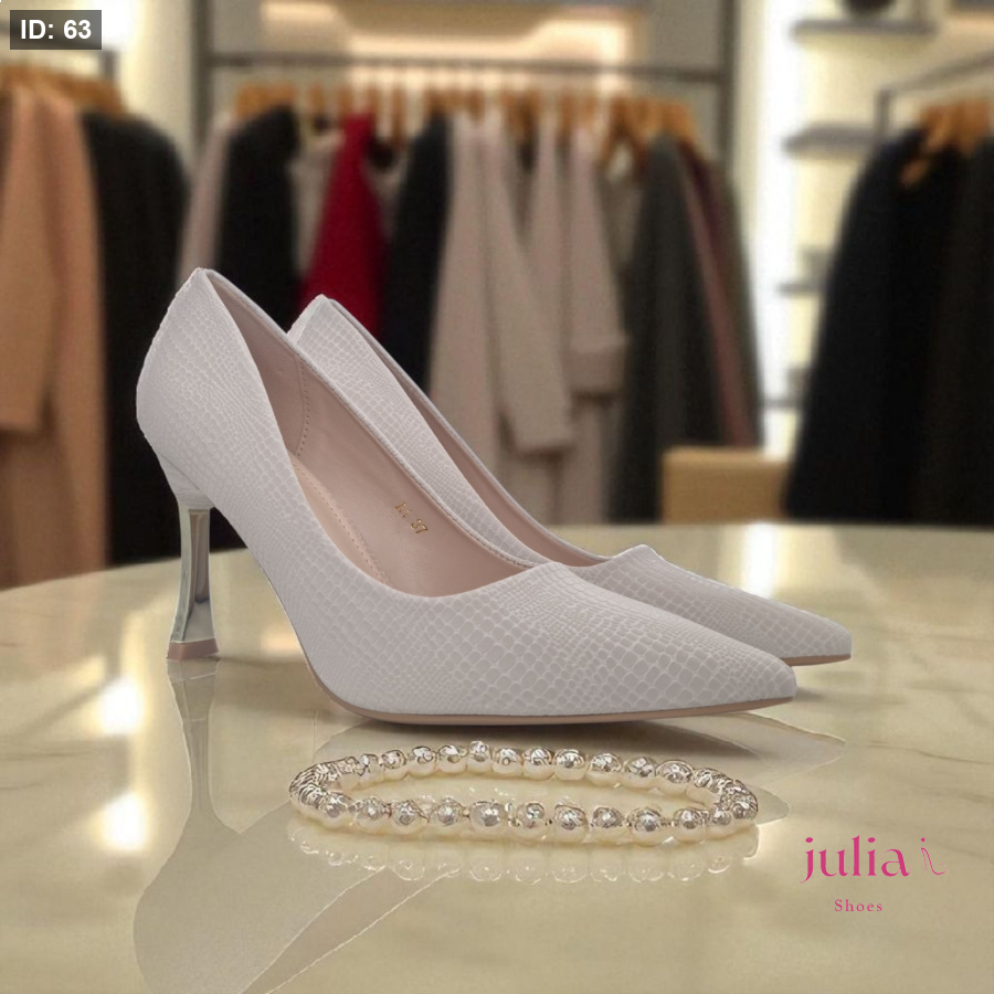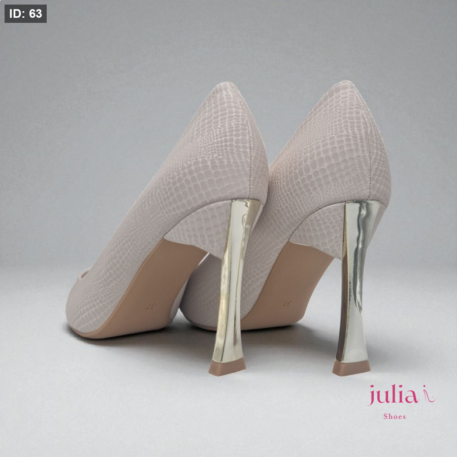 WHITE LEATHER HEEL WITH TOE METALLIC HEEL